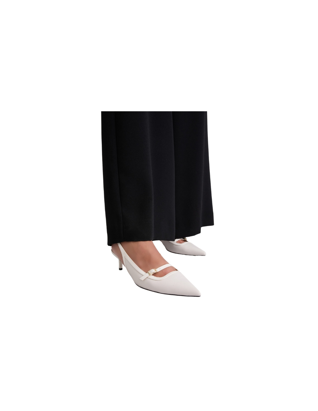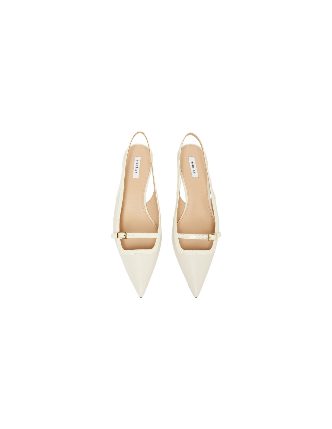 Scarpe modello slingback in nappa, bianco lana con dettagli in vernice tono su tono.
